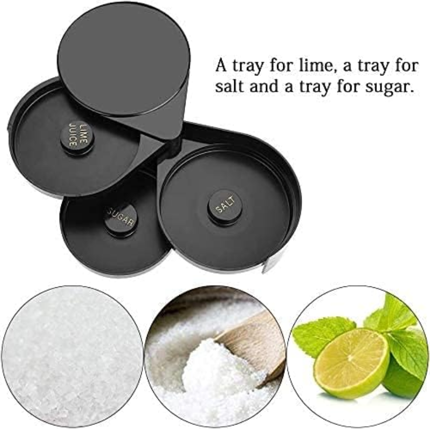 - Diseño separado de 3 niveles: nuestro borde de cristal de barra está diseñado con 3 niveles que ayudan a mantener los ingredientes separados, su nivel separado es conveniente para que puedas quitar sal, azúcar y zumo de lima u otros que necesites.